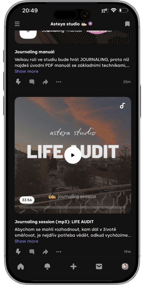 Nepravidelně budou ve studiu probíhat taky journaling sessions bez vedení – jednoduše si pustíš stream a budeme společně psát, každá o tom svém.