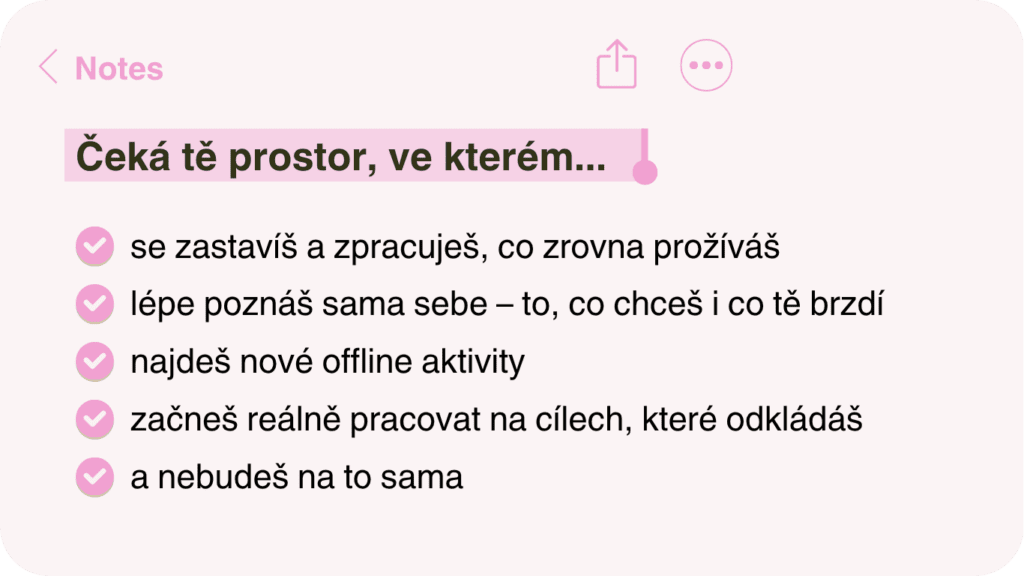 pro holky, které chtějí líp porozumět samy sobě, tvořit si život podle vlastních představ a trávit víc času v realitě než bezmyšlenkovitým scrollováním na sociálních sítích.